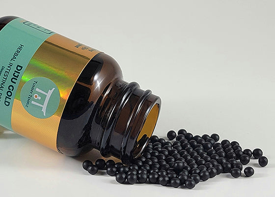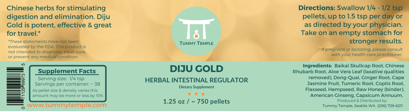 Introducing, Diju Gold! This Chinese herbal formula is a new addition to the Diju family and has both a shift in proportions to the original ingredients as well as added ingredients to create a new stronger effect. It's designed to stimulate digestion and elimination and can handle tougher cases of dry constipation with an added anti-inflammatory component.* Diju Gold is potent, effective & great for stubborn cases.
