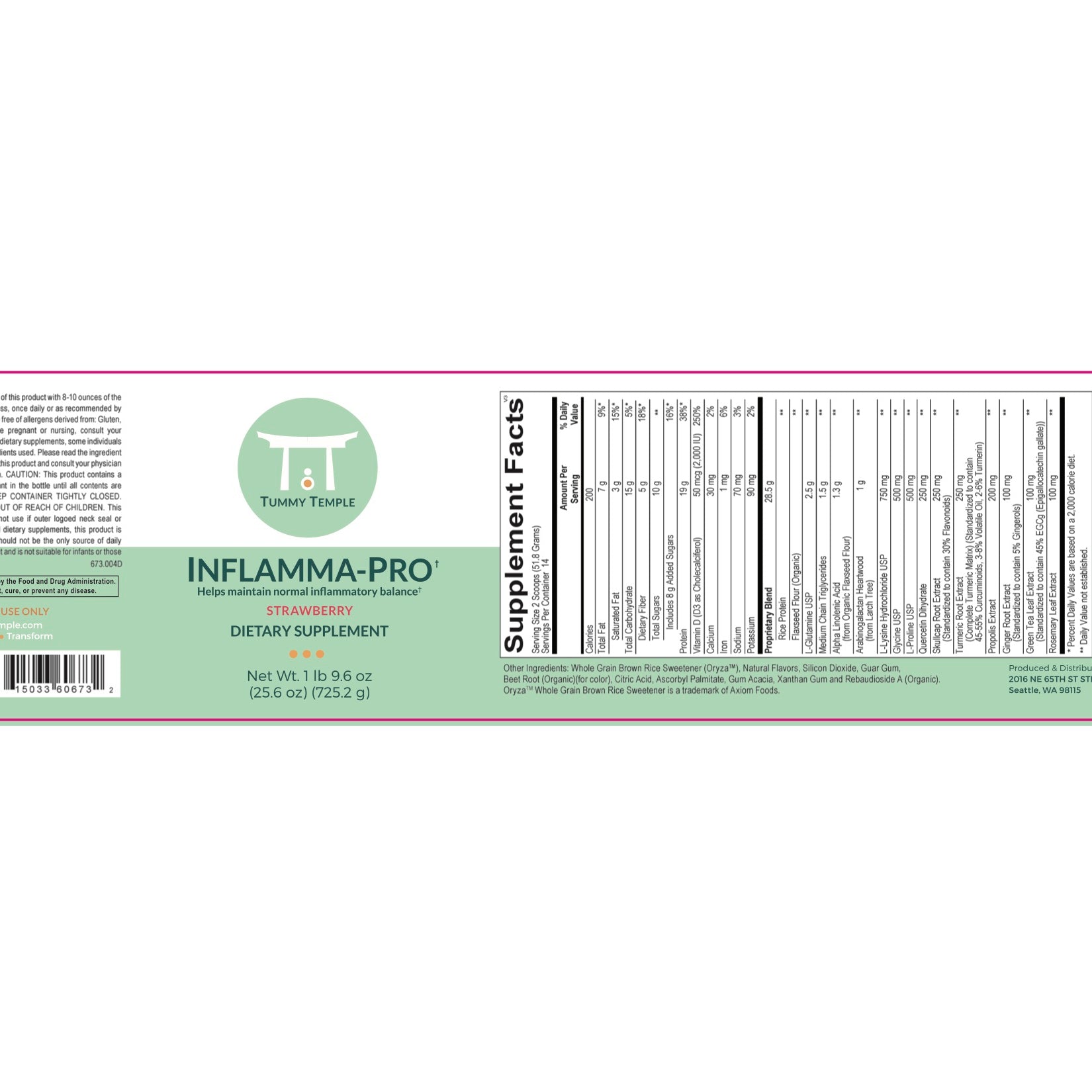 Ingredients: Baikal Skullcap Root, Chinese Rhubarb Root, Aloe Vera Leaf (laxative qualities removed), Dong-Quai, Ginger Root, Cape Jasmine Fruit, Tumeric Root, Coptis Root, Flaxseed, Hempseed, American Ginseng, Capsicum Annuum, Raw Honey (binder)