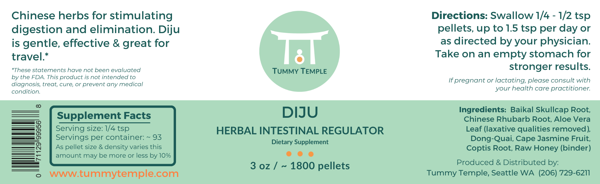 Wild Crafted Ingredients: Baikal Skullcap Root, Chinese Rhubarb Root, Aloe Vera Leaf (laxative qualities removed), Dong-Quai, Cape Jasmine Fruit, Coptis Root, Raw Honey (binder).