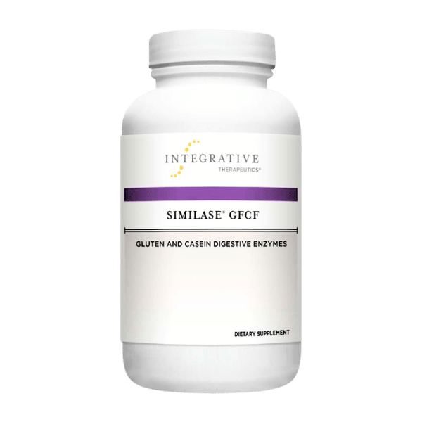 Digestion of gluten and casein can be particularly difficult for some individuals. Similase GFCF contains enzymes to support comprehensive digestion, while also providing dipeptidyl peptidase IV (DPP IV) activity for the digestion of proline-containing dipeptides from gluten and casein.* Similase GFCF supports a gluten-free, casein-free lifestyle and helps relieve occasional indigestion, gas and bloating.*