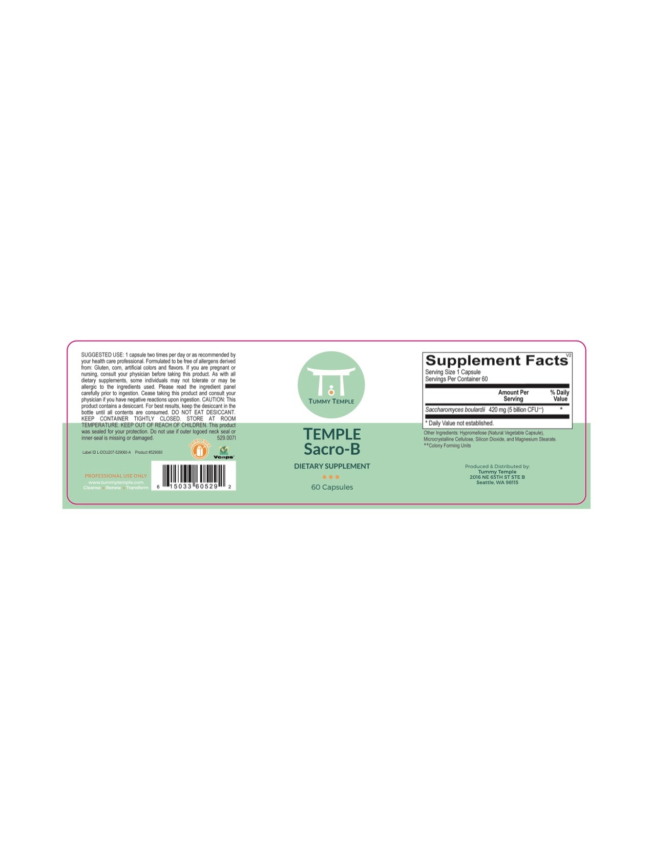 Temple SacroB (Saccharomyces boulardii) formula includes a probiotic yeast that helps support immune function and balance gastrointestinal flora.